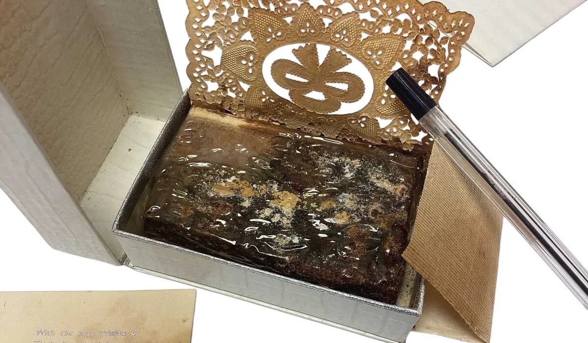 وكانت القطعة جزءا من كعكة زفاف ملكية ضخمة التي تم توزيعها على 2000 ضيف في حفل الزفاف الذي أقيم في 20 نوفمبر 1947 في قصر باكنغهام.