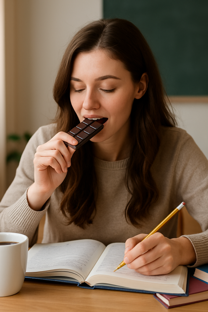 إذا كنت تبحث عن سر بسيط يعزز تركيزك ويقوي ذاكرتك أثناء الدراسة، فقد يكون الحل أقرب مما تتخيل... في لوح شوكولاتة! نعم، الشوكولاتة الداكنة ليست فقط لذيذة، بل قد تكون وسيلتك لتحقيق نتائج دراسية أفضل، بحسب ما تقترحه دراسات علمية حديثة.