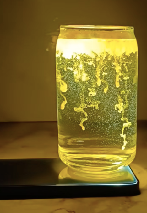 كل ما يحتاجه المشاركون في هذا التحدي البسيط هو مصباح الهاتف، كوب ماء نقي، وغرفة مظلمة... ثم تأتي اللمسة السحرية: رش القليل من الكركم فوق الكوب، لتتحول المياه فجأة إلى مشهد ساحر مضيء وكأنها مقتبسة من أحد أفلام ديزني! الضوء الأصفر المتوهج داخل الكوب يخلق دوامات لونية تبهر الصغار والكبار وتدعو للمشاهدة مرة تلو الأخرى.